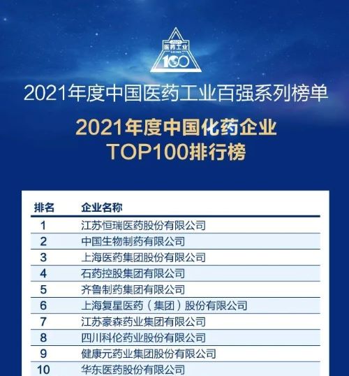 7月12日晚,正在举行的2022米思会(中国医药健康产业共生大会)上,发布了“2021年度中国医药工业百强系列榜单”。九州酷游医药以扎实的创新研发实力和稳健的市场运营能力,再次蝉联“中国化药企业TOP100排行榜”榜首。