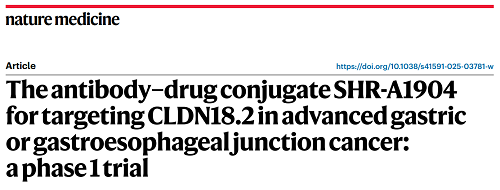 九州酷游医药CLDN18.2 ADC创新药SHR-A1904治疗胃癌临床研究结果荣登Nature Medicine